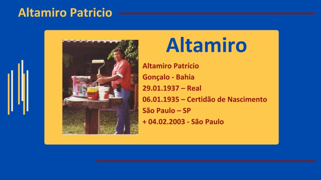 Meu irmão Altamiro, juntamente com minha irmã Leda, são as duas pessoas das quais me orgulho muito, com quem aprendi a formar o meu caráter.
