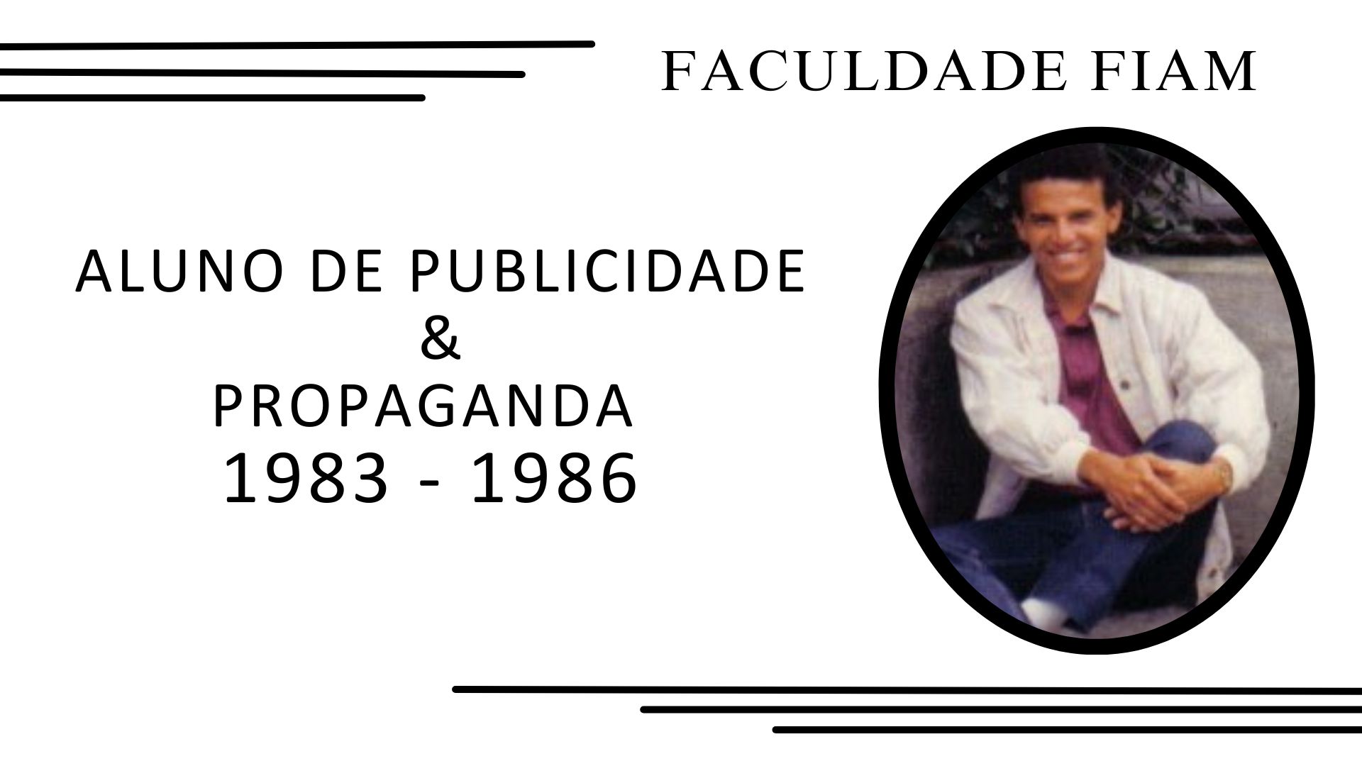 Conheci o diretor da FIAM o professor Roney Cesar Signorini através do Marinho Guzman que era da minha turma do curso de Propaganda e Publicidade na FIAM. O Roney começou a frequentar o STATUS STUDIO e sempre almoçávamos juntos e num destes almoços ele me convidou para trabalhar na Faculdade FIAM no departamento de audiovisual. Então de julho a dezembro de 1987 trabalhei como cinegrafista, editor e diretor de TV.